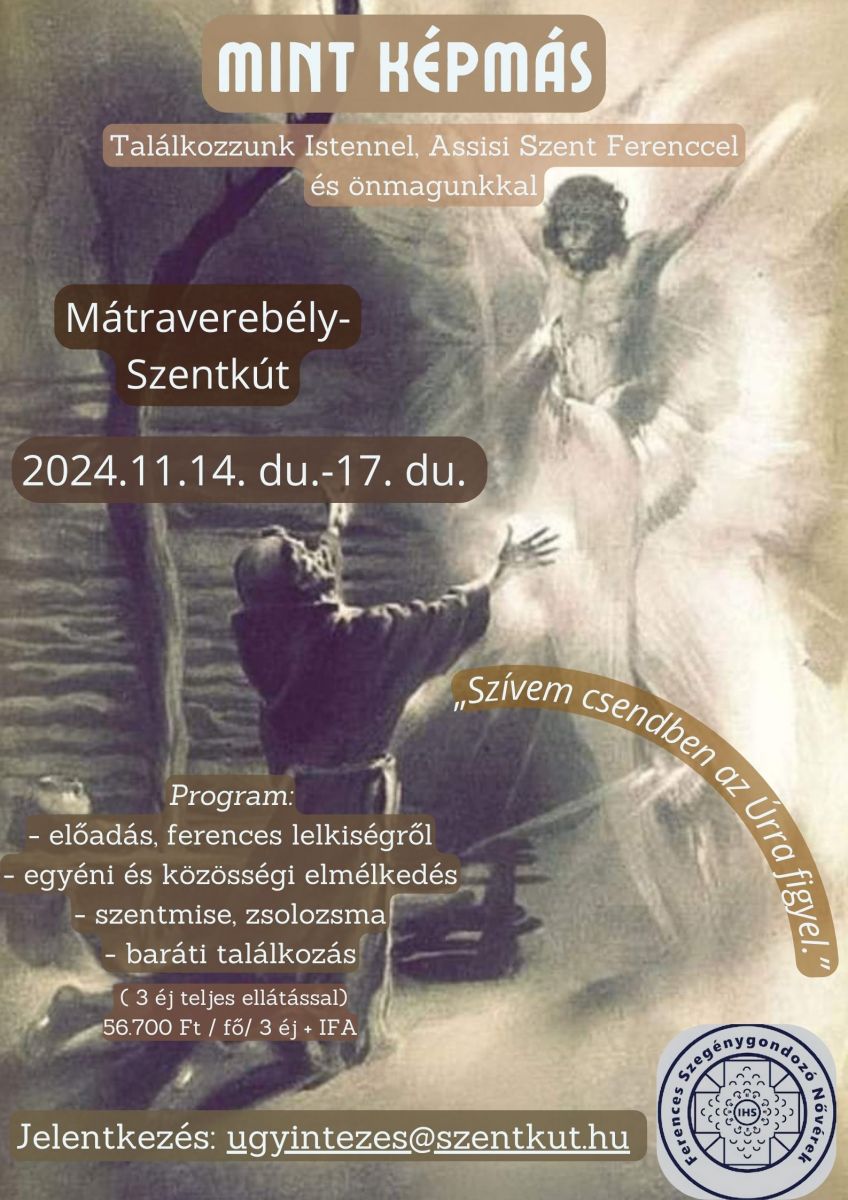 A lelkigyakorlat jelentkezési határideje 2024.11.07-e, csütörtök. ( Amennyiben a megfelelő létszám nem jön össze sajnos nem áll módunkban megtartani a lelkigyakorlatot.)