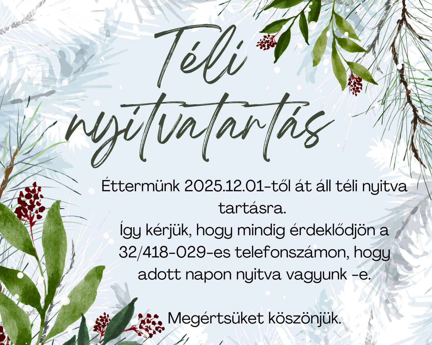 Téli nyitva tartás 2025